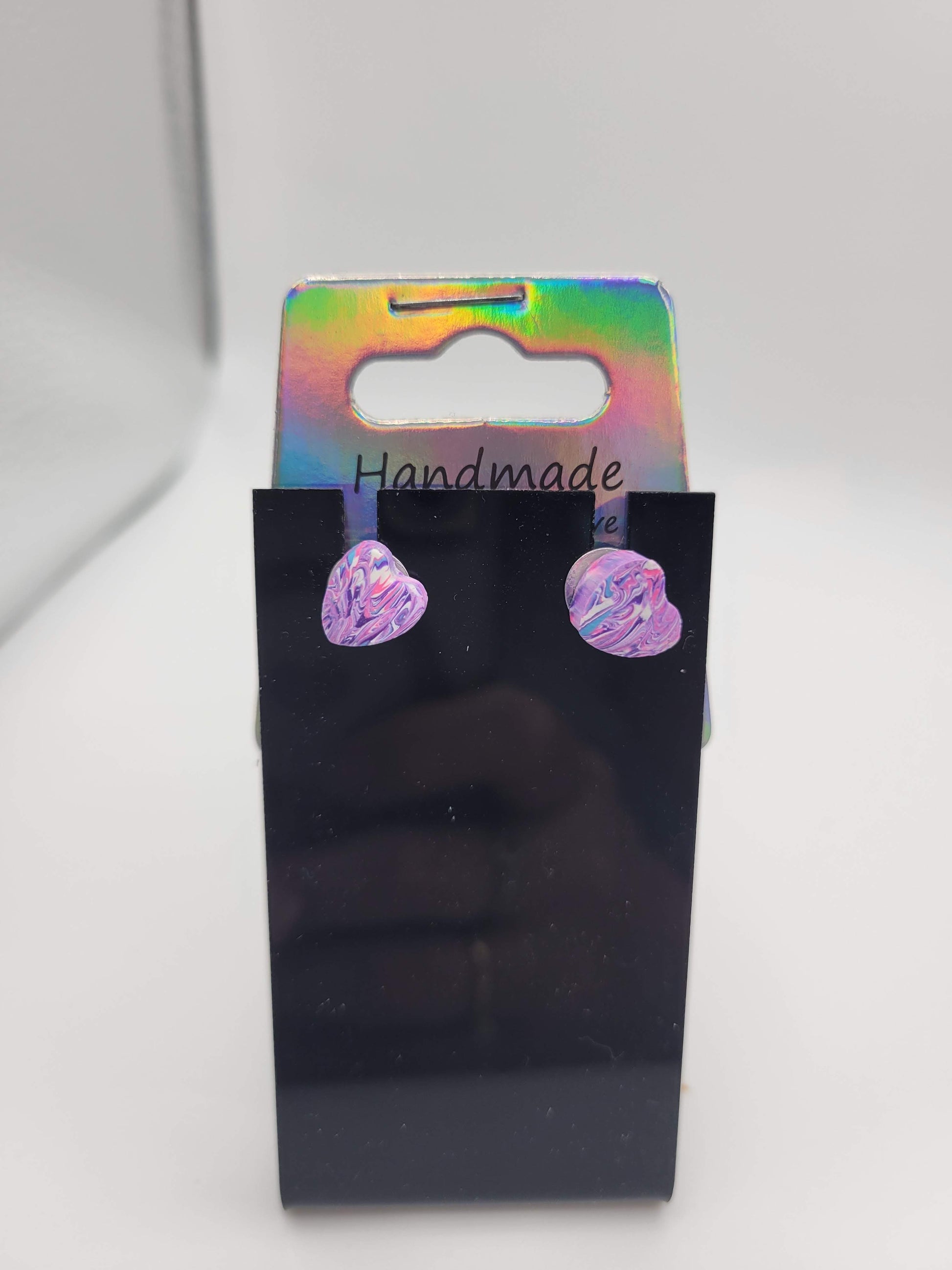 Heart Stud Purple/Pink/Blue/White Tie Dyed | Clay Earrings