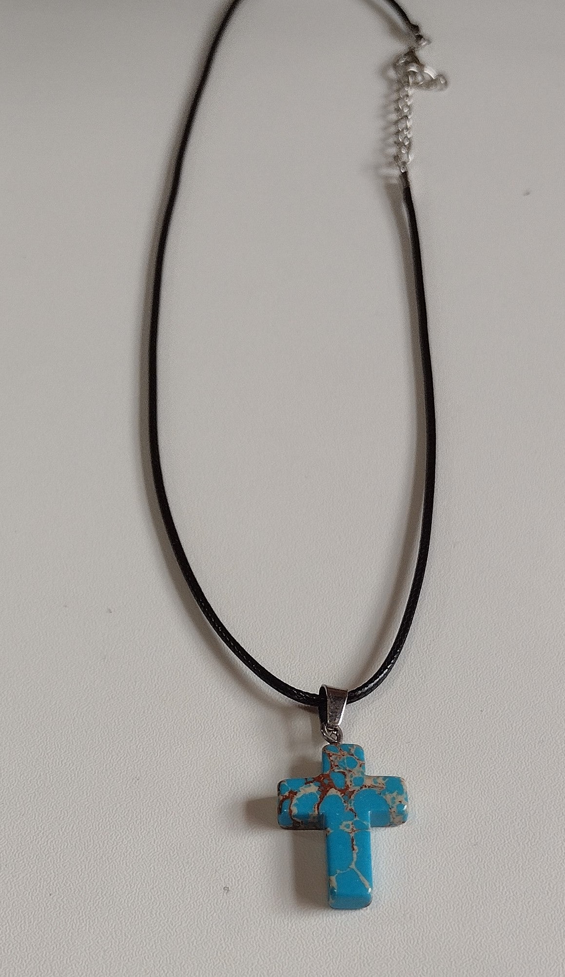 Ocean Blue Marble Cross | Corded Necklace - 18"