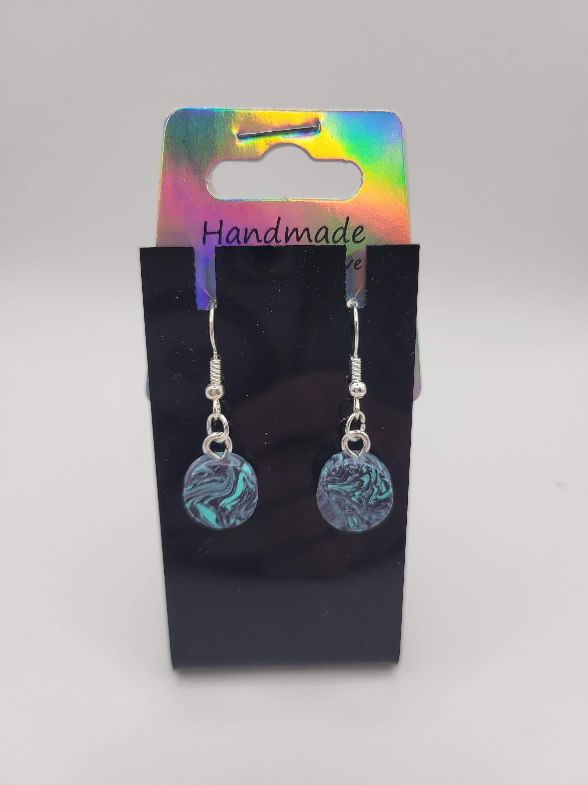 Round Black/Teal Tie Dyed | Clay Earrings