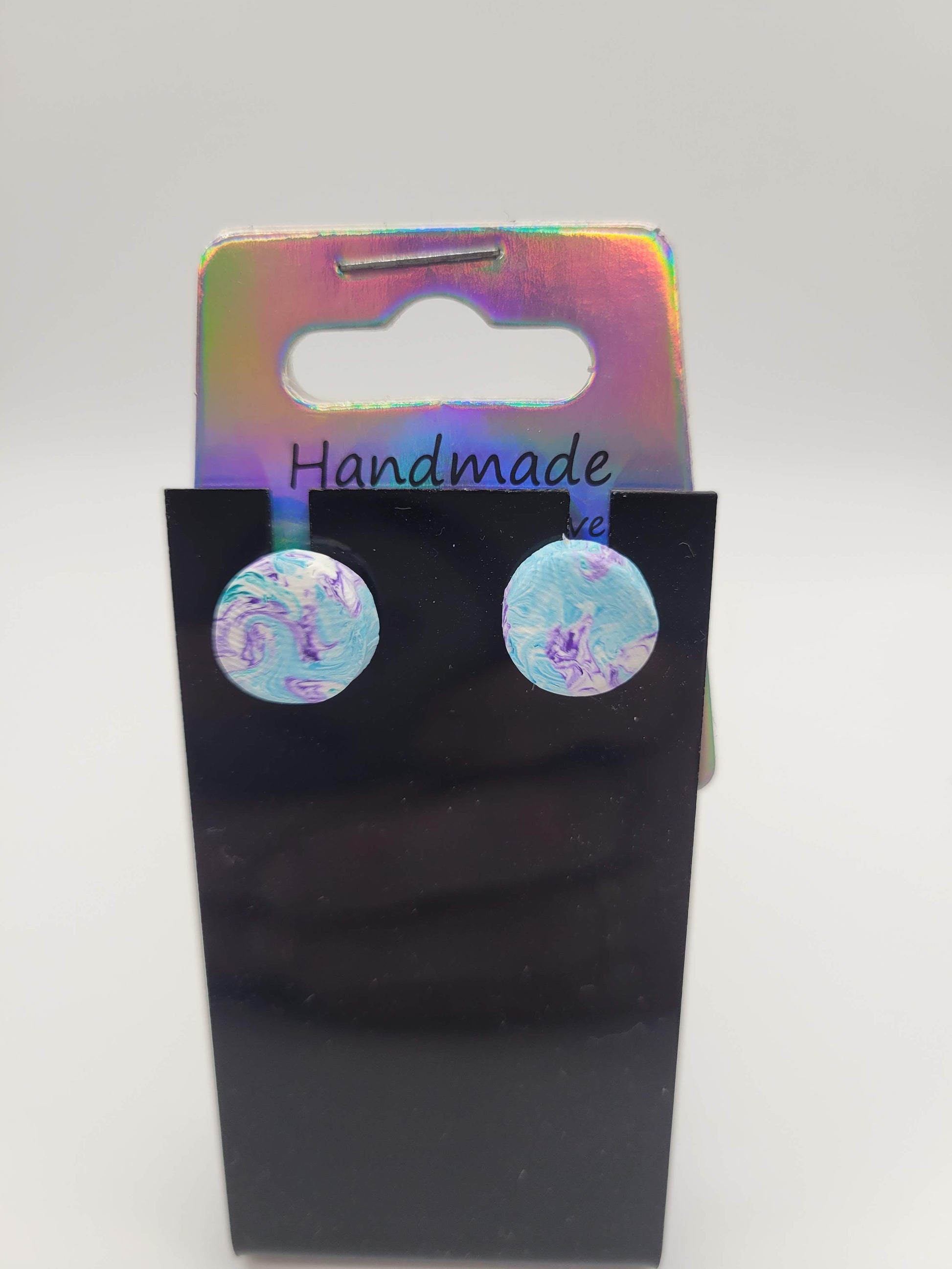 Round Stud Purple/Blue/White Tie Dyed | Clay Earrings